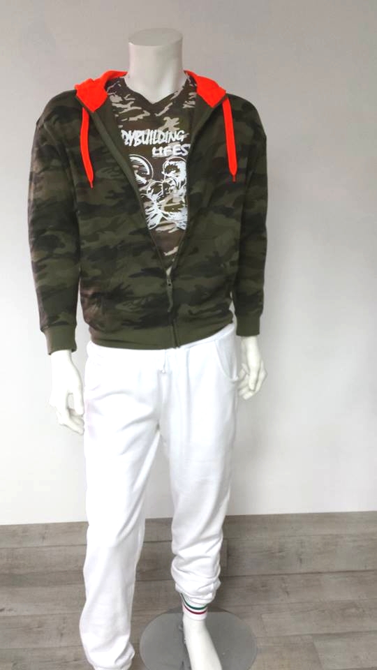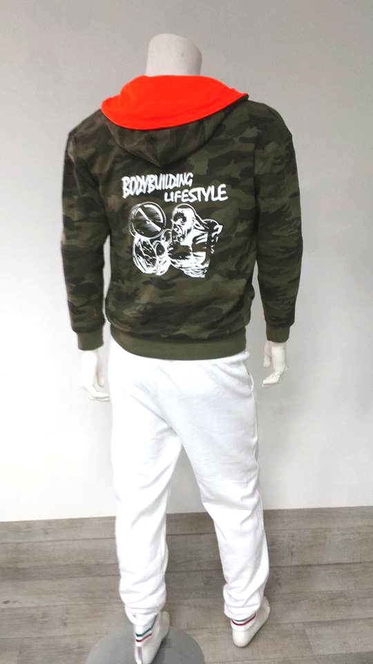 FELPA GARZATA CAMOUFLAGE, CAPPUCCIO CONTRASTO PERSONALIZZABILE CON STAMPE O RICAMI